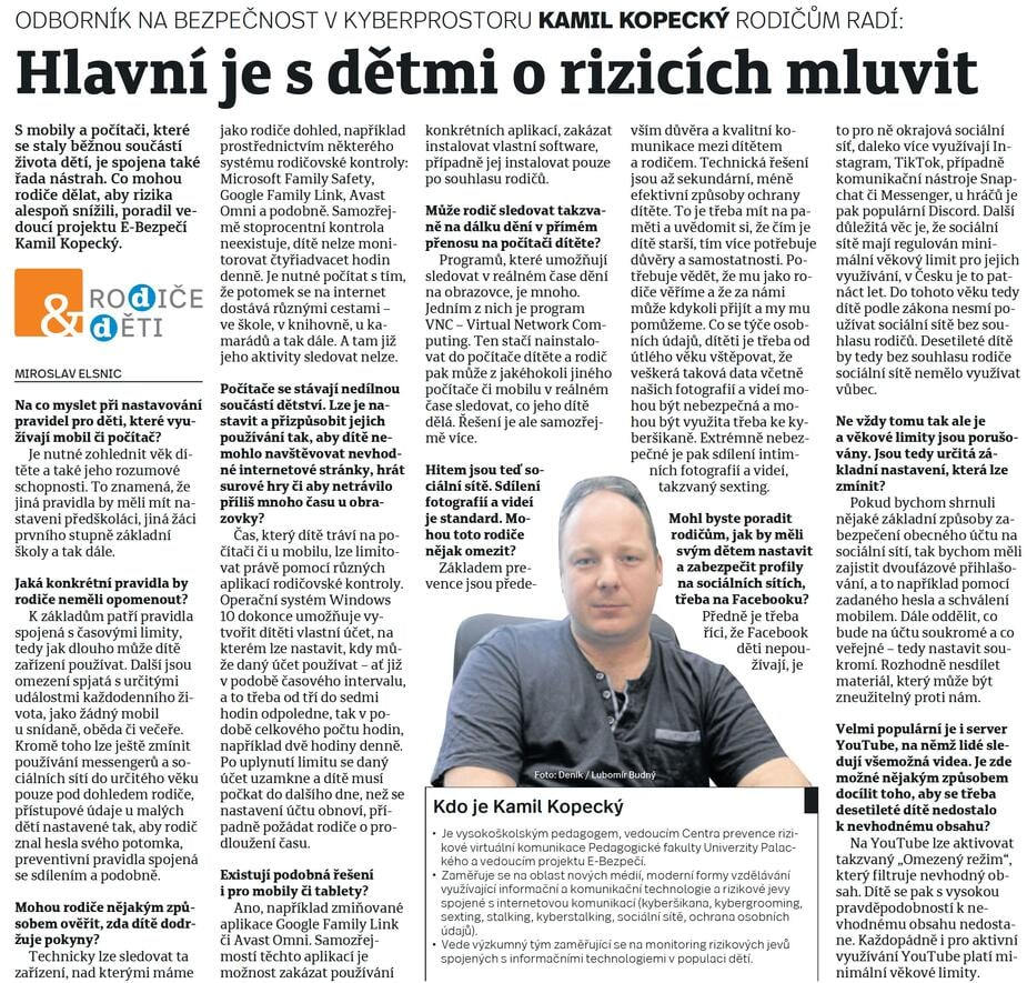 pdf Kamil Kopecký: Internet a děti? Žijeme obrovský experiment (Hanácké noviny, 2019) ( pdf, 371 KB ) (2572 stažení) Populární